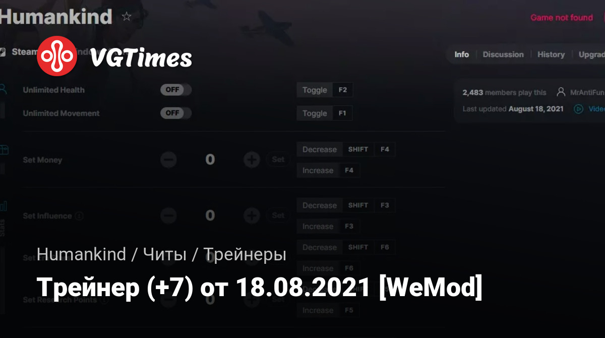 Для использования трейнера необходима установка системы WeMod (требуется онлайн подключение).