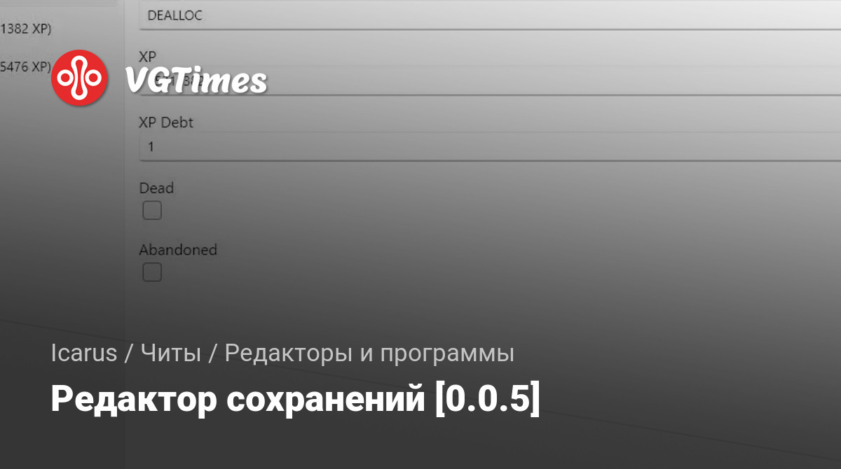 Программа для редактирования файла сохранения. Позволяет изменять опыт, кредиты, экзотику и прочность предметов инвентаря.
