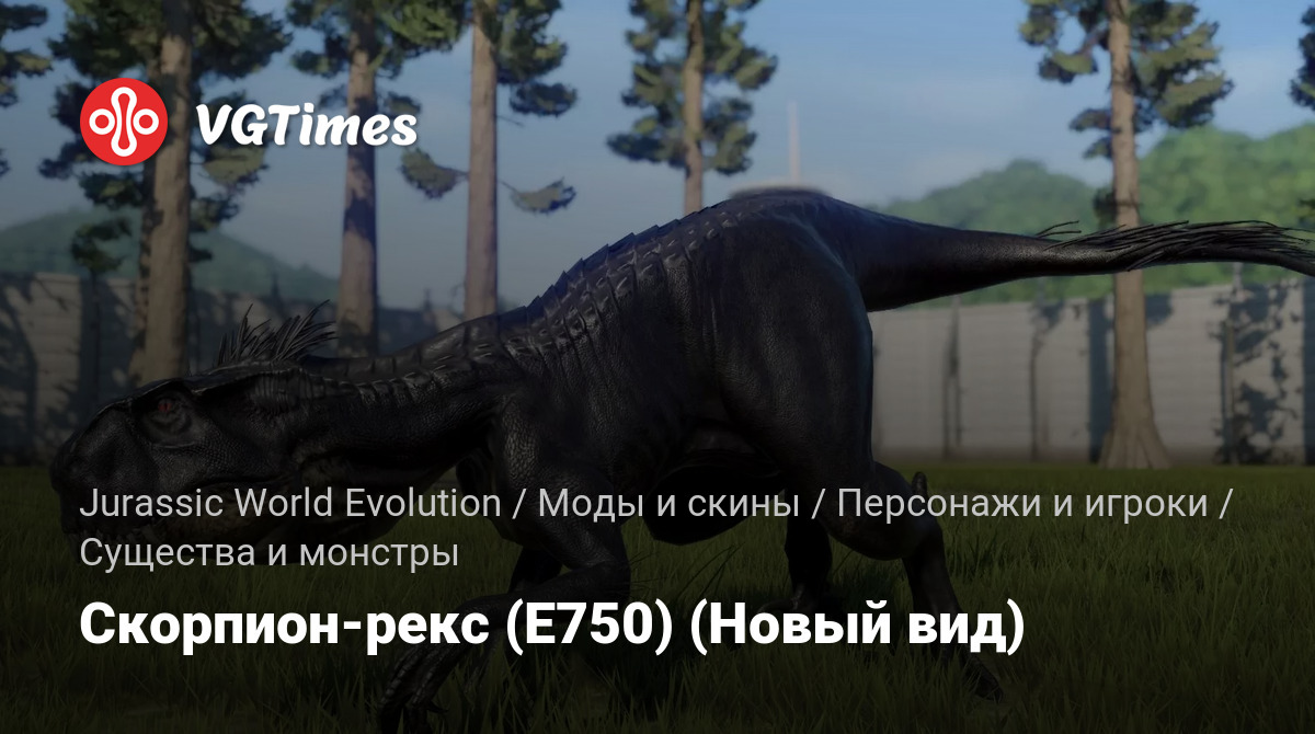 Scorpios rex, также известный как образец E750, был первой успешной попыткой доктора Генри Ву создать гибридного динозавра. Используя ДНК различных вымерших и сохранившихся животных, в основном велоцирапторов, карнотавров, тираннозавров и скорпионов, Ву удалось создать жизнеспособный образец. Саймон Масрани счел актив «слишком уродливым для отображения» и приказал уничтожить клон вместе с записями о его создании. Не желая уничтожать созданное им существо, доктор Ву вместо этого солгал Масрани и тайно хранил образец E750 на острове в криогенной камере.