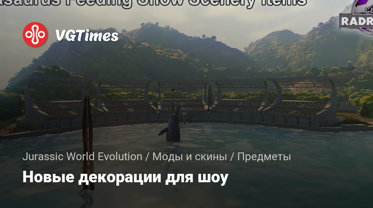 Этот мод добавит 12 новых элементов декораций, связанных с шоу кормления мозазавра. Эти предметы появятся сразу после стандартных декораций: деревья, скалы, входы в парк.