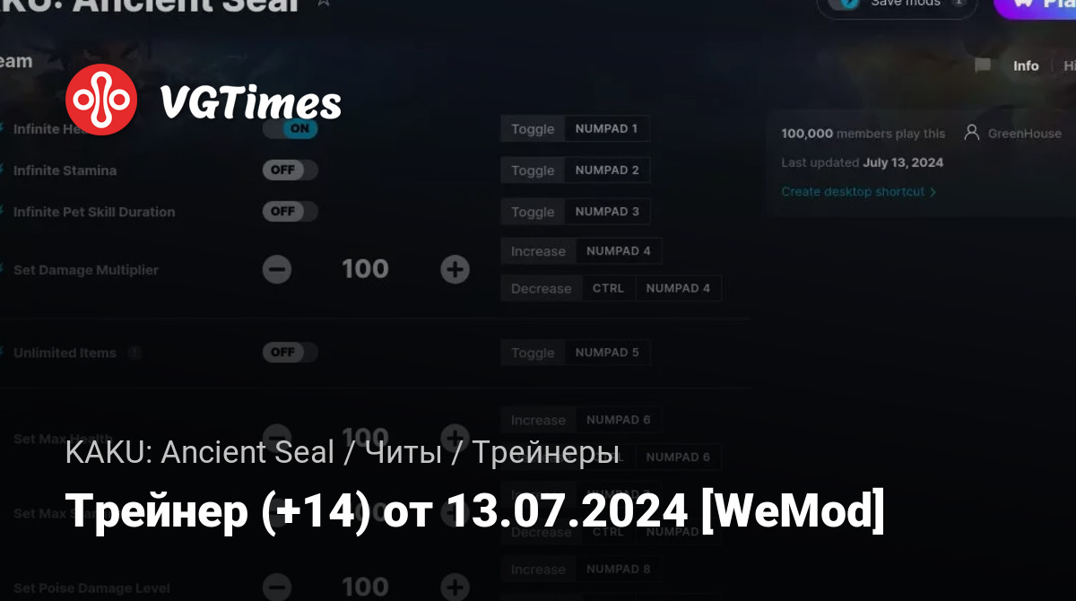Трейнер (+14) от 13.07.2024 [WeMod]