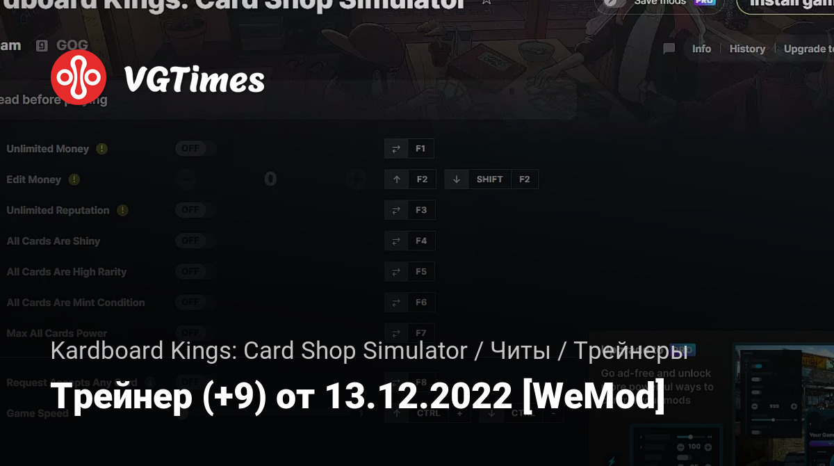 Для использования трейнера необходима установка системы WeMod (требуется онлайн подключение).