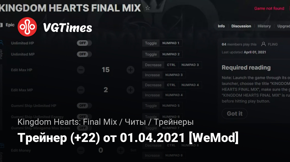 • Kingdom Hearts: Final Mix — Трейнер (+22) от 01.04.2021 [WeMod]