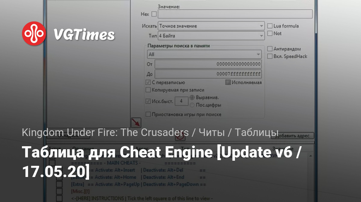 Таблица для Cheat Engine [Update v6 / 17.05.20]
