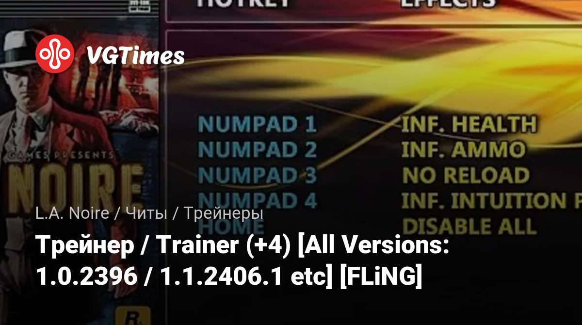 Gry L.A. Noire Pliki Trenery Трейнер / Trainer (+4) [All Versions: 1.0.2396 / 1.1.2406.1 etc] [FLiNG]