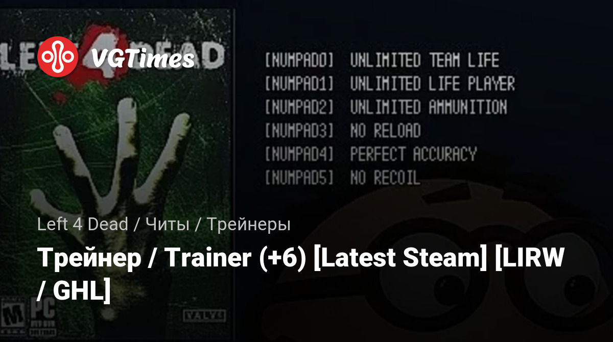 • Left 4 Dead — Трейнер / Trainer (+6) [Latest Steam] [LIRW / GHL]