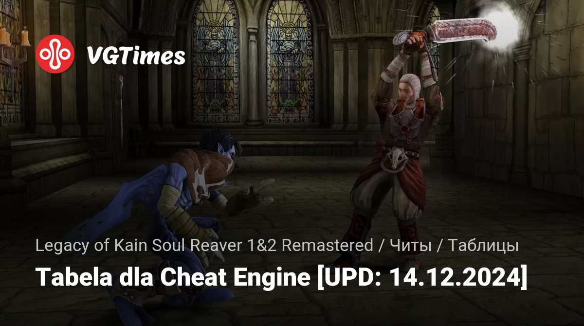 • Legacy of Kain Soul Reaver 1&2 Remastered — Tabela dla Cheat Engine [UPD: 14.12.2024]