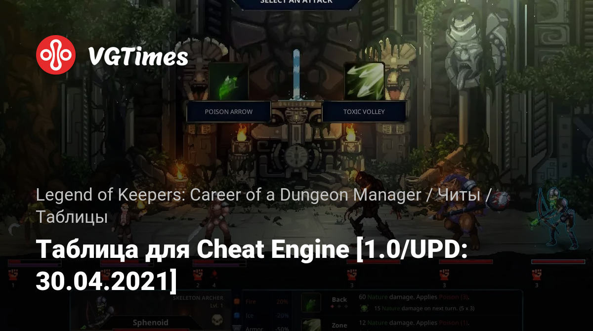 Gry Legend of Keepers: Career of a Dungeon Manager Pliki Tabele Таблица для Cheat Engine [1.0/UPD: 30.04.2021]