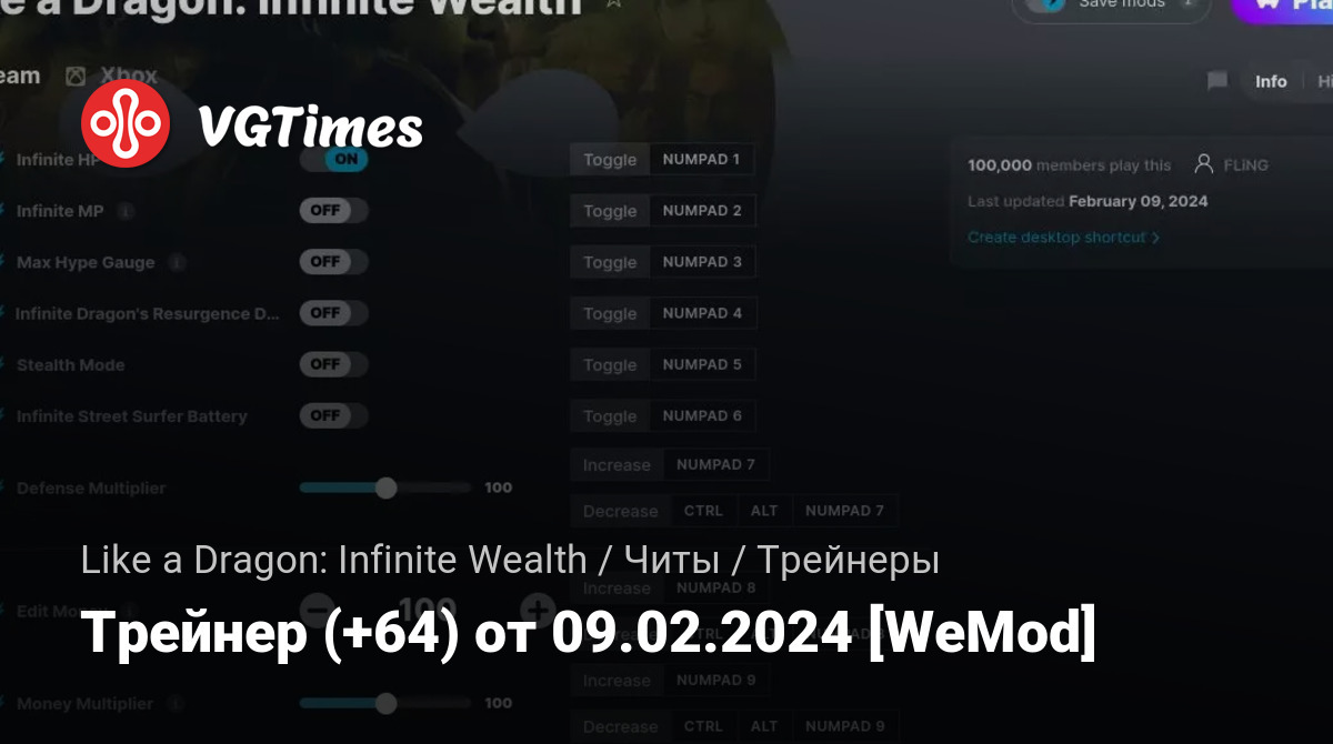 Трейнер (+64) от 09.02.2024 [WeMod]