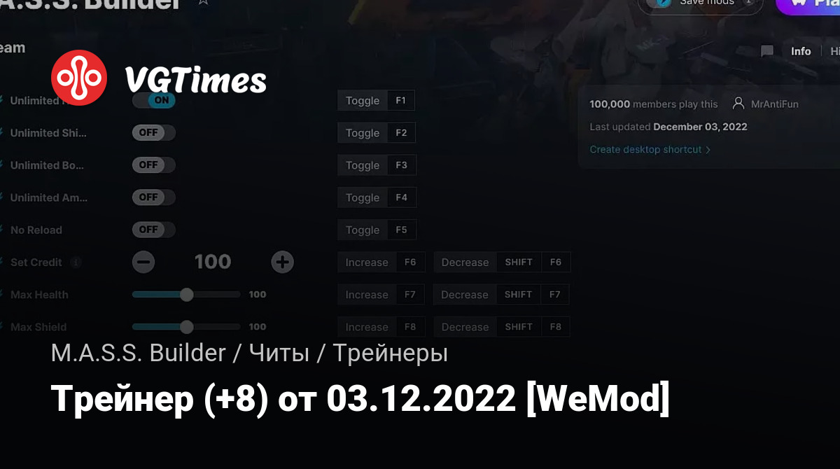 • M.A.S.S. Builder — Трейнер (+8) от 03.12.2022 [WeMod]