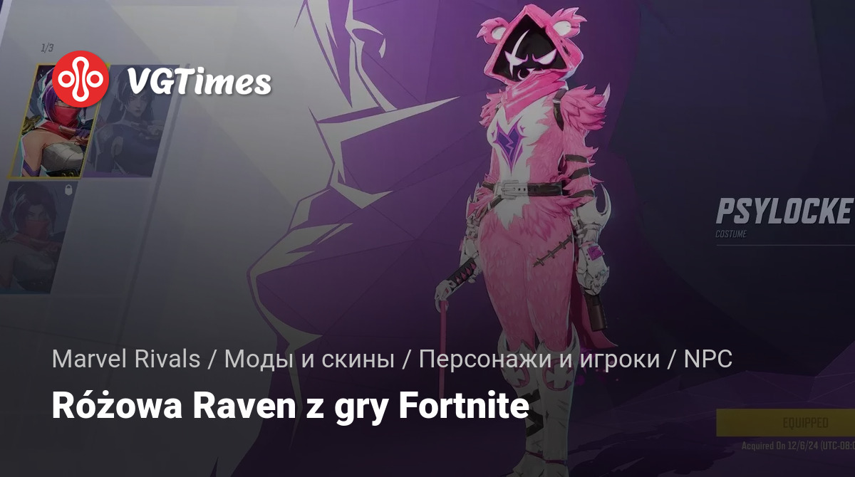 Zastępuje podstawowy kostium Psylocka alternatywnym różowym/sympatycznym stylem dowódcy drużyny Raven z gry Fortnite.