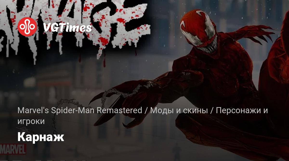 Карнаж вместо классического костюма. Для установки используйте Spider-Man PC Modding Tool.