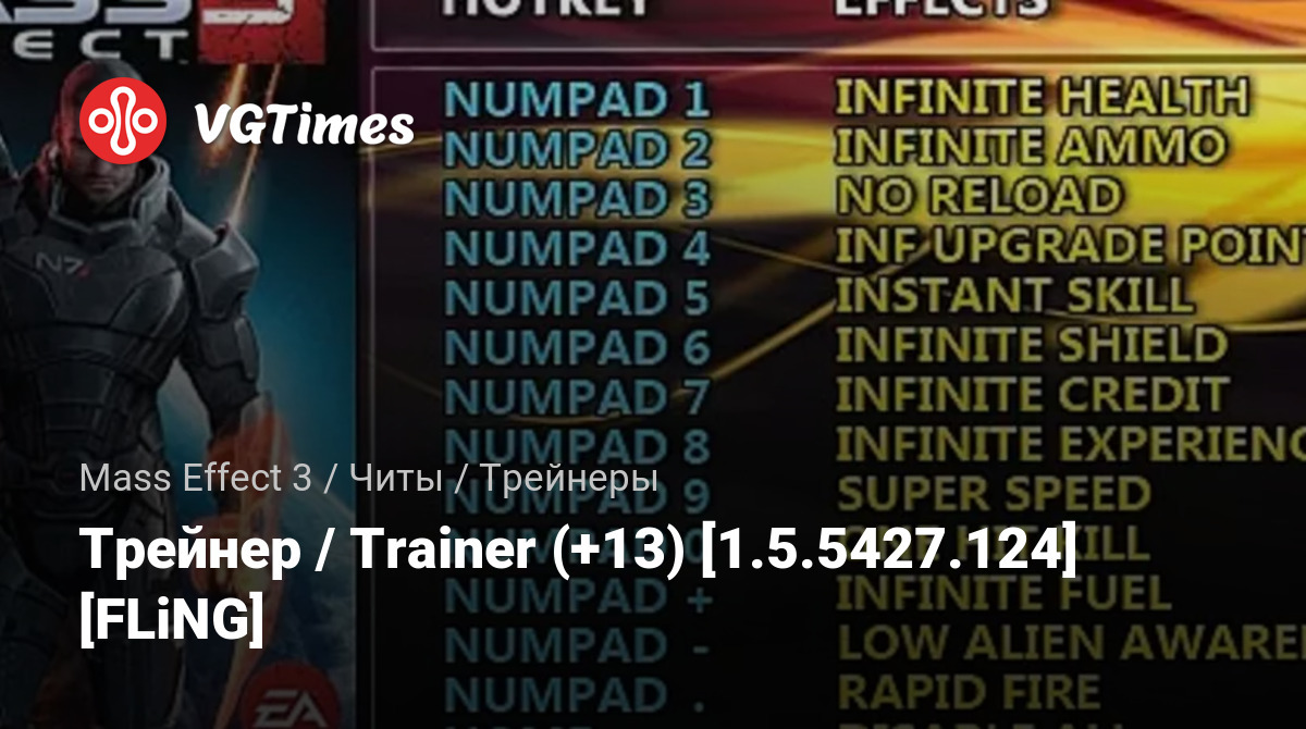 • Mass Effect 3 — Трейнер / Trainer (+13) [1.5.5427.124] [FLiNG]