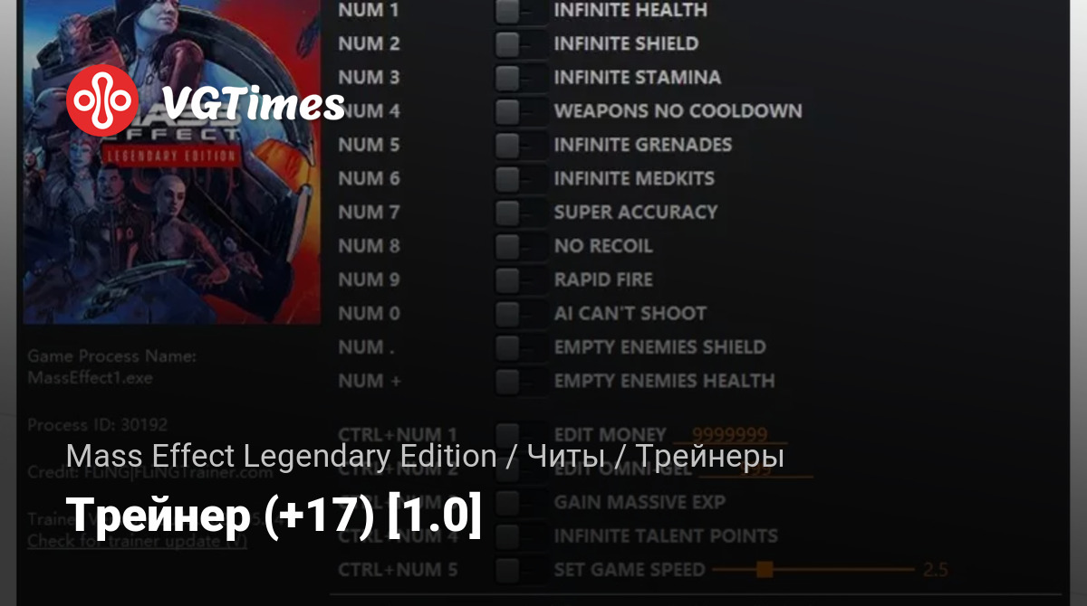 • Mass Effect Legendary Edition — Трейнер (+17) [1.0]