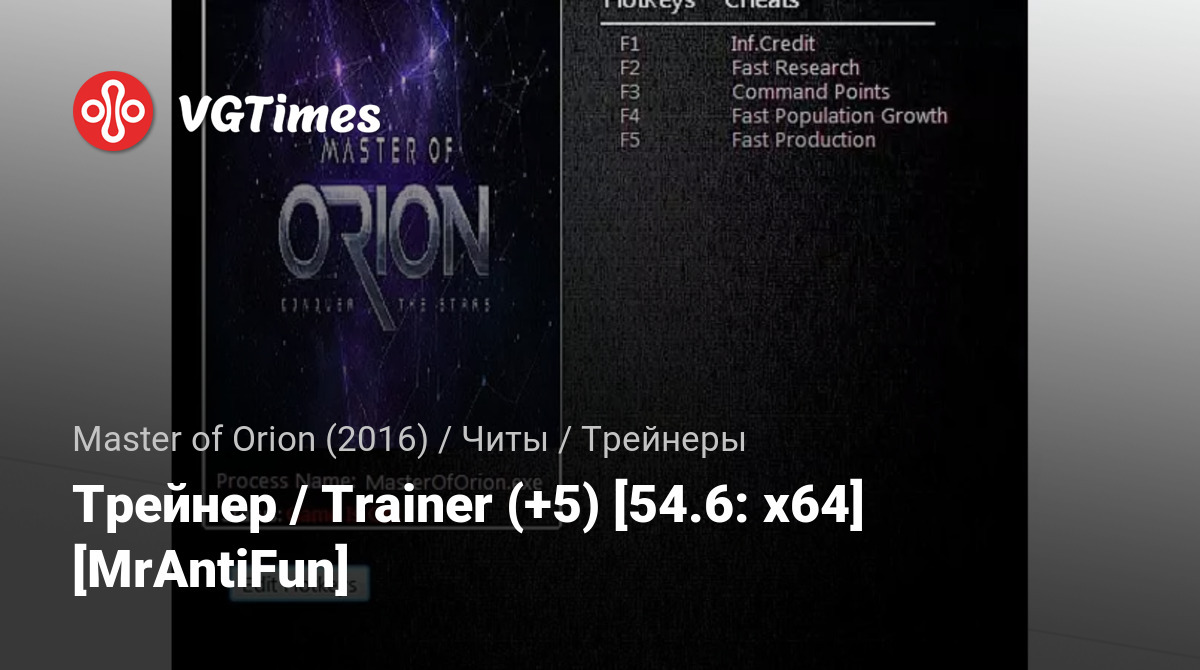 • Master of Orion (2016) — Трейнер / Trainer (+5) [54.6: x64] [MrAntiFun]