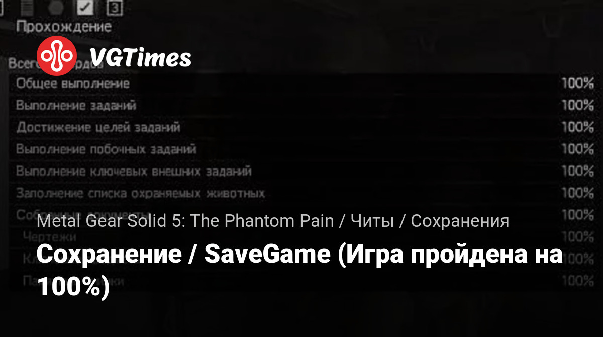• Metal Gear Solid 5: The Phantom Pain — Сохранение / SaveGame (Игра пройдена на 100%)