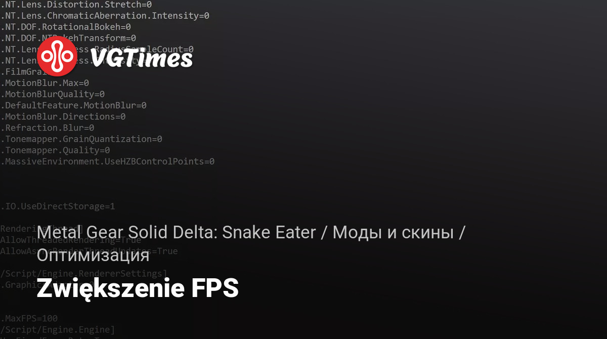 - Поместить файл engine.ini в %LOCALAPPDATA%\MGSDelta\Saved\Config\Windows\.