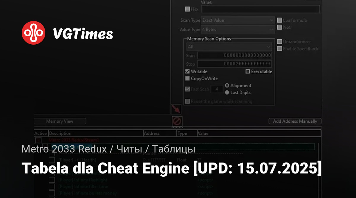 Tabela dla Cheat Engine [UPD: 15.07.2025]