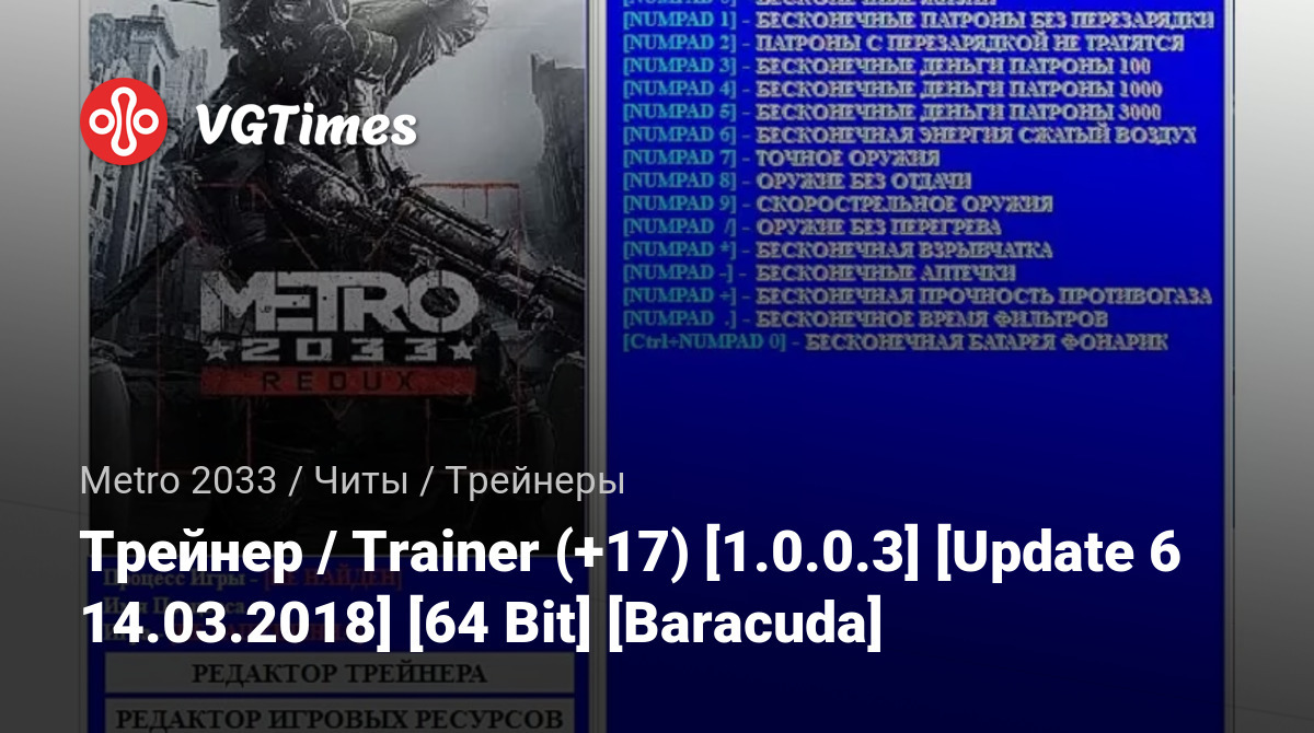 Gry Metro 2033 Pliki Trenery Трейнер / Trainer (+17) [1.0.0.3] [Update 6 14.03.2018] [64 Bit] [Baracuda]