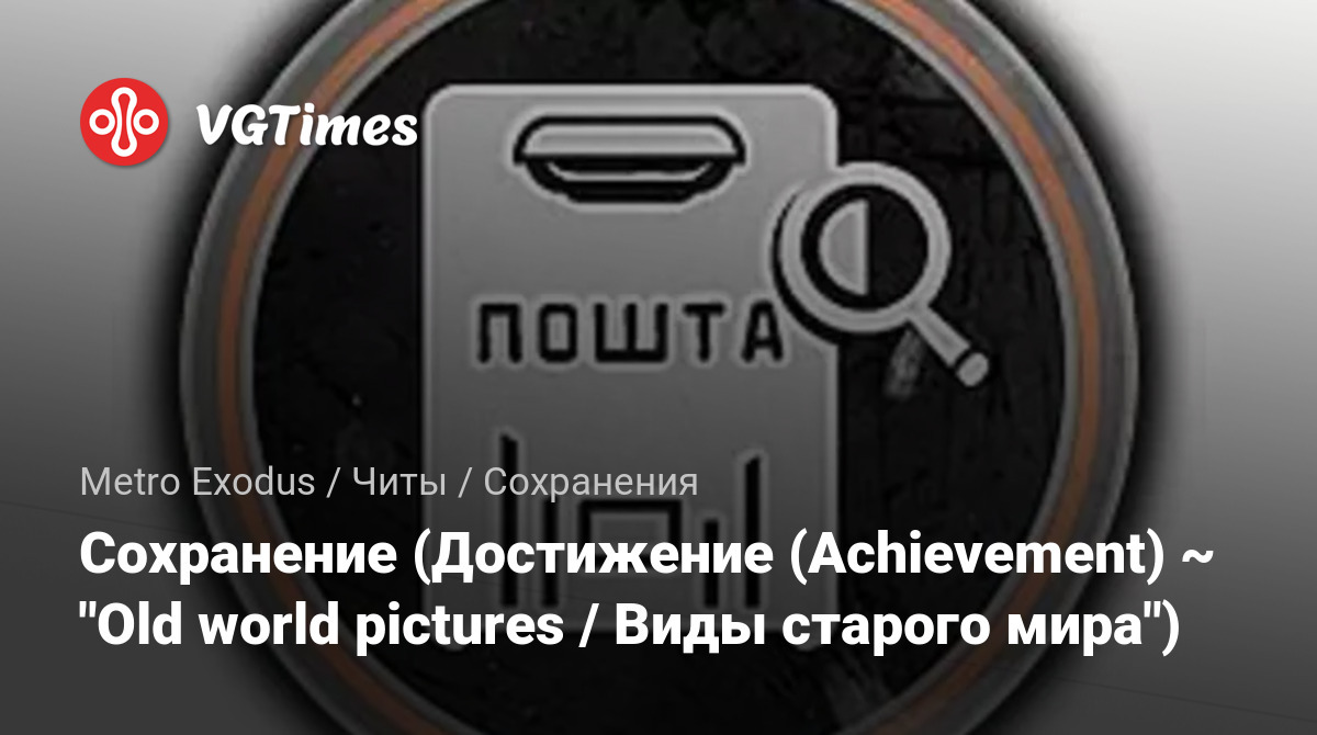 Далее переходим по адресу: C:\Users\Имя Пользователя\Сохраненные игры\metro exodus. В папке Metro Exodus будет еще одна подпапка, ее название индивидуальное для каждого пользователя. В данной папке и лежат все сохранения. Делаем резервную копию своих файлов и заменяем его файлами из архива.Можно заходить в игру и продолжать игру, по-моему, автосохранению. После загрузки подбираем последнюю открытку и достижение «Old world pictures / Виды старого мира» ваше. Потом просто удалите моё сохранение из папки и вставите свои файлы. Либо включите Steam Cloud, он сам все сделает.