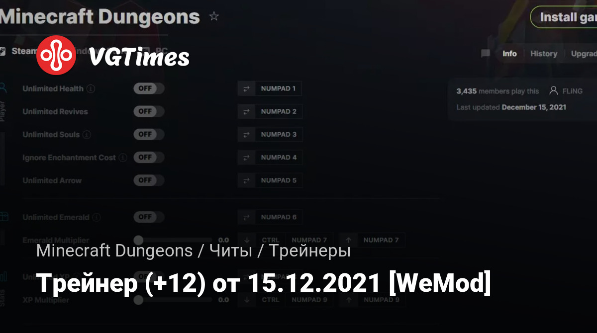 • Minecraft Dungeons — Трейнер (+12) от 15.12.2021 [WeMod]