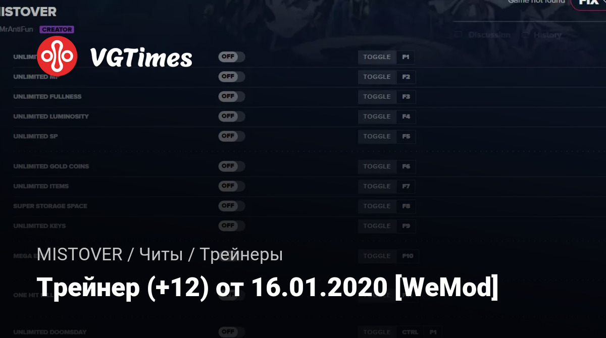 • MISTOVER — Трейнер (+12) от 16.01.2020 [WeMod]