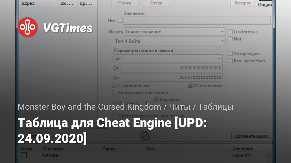 Таблица для Cheat Engine [UPD: 24.09.2020]