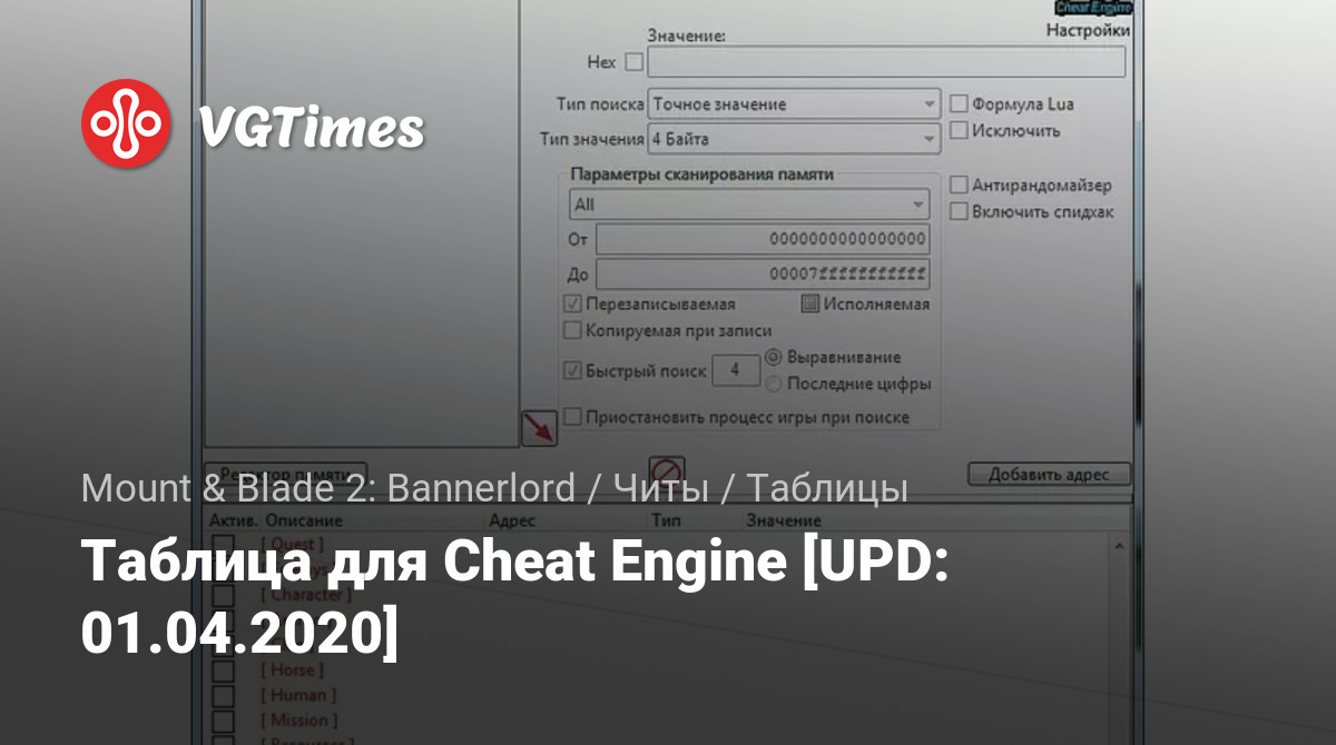 Таблица для Cheat Engine [UPD: 01.04.2020]