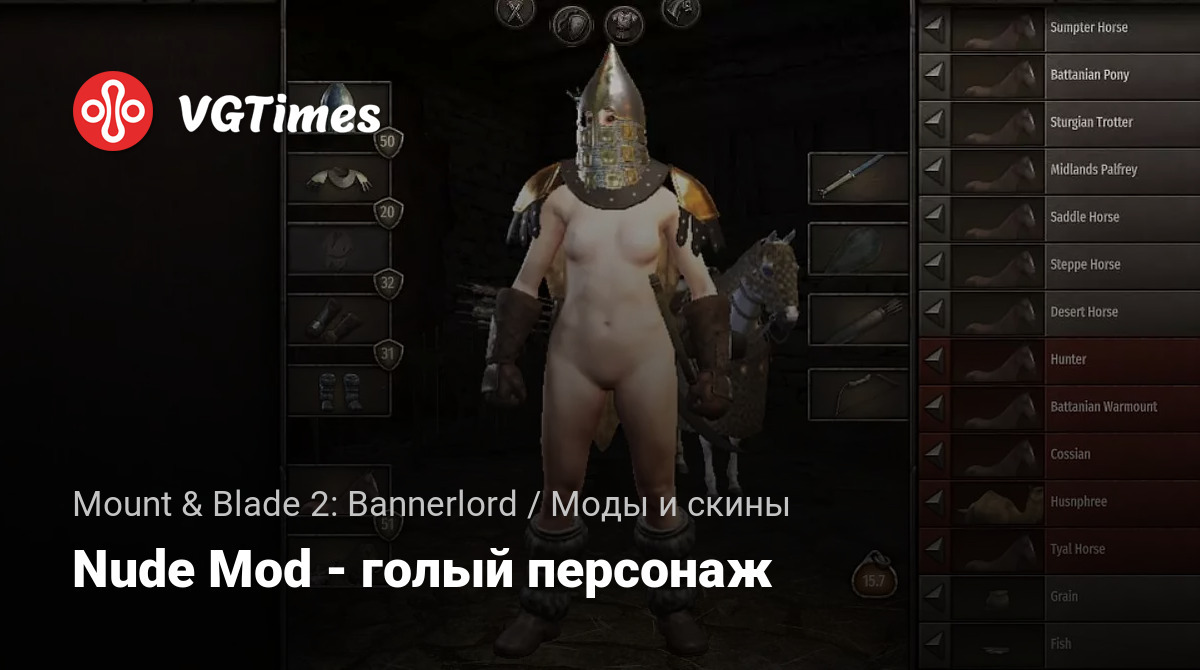 В наше время откровенные модификации, они же Nude Mod, не обходят сторонный популярный игры, так случилось и с Mount & Blade 2: Bannerlord. Этот мод полностью раздевает женского персонажа, теперь вместе нижнего белья, ваш персонаж будет полностью голым.