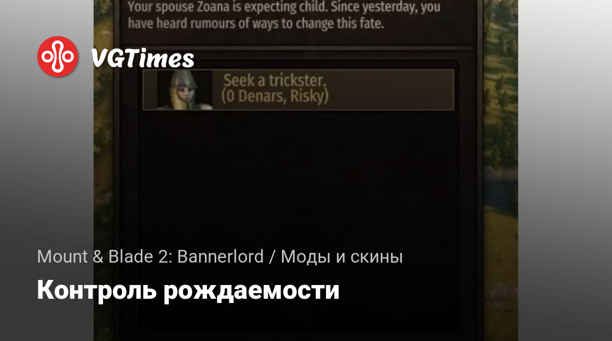 Этот мод позволяет контролировать, как часто вы видите свою жену, чтобы скорректировать вероятность зачатия ребенка. Кроме того, если беременность наступает, она предлагает способы избавиться от ребенка... Данный мод предоставляет эти функции в повествовательной форме, для одиночной кампании.