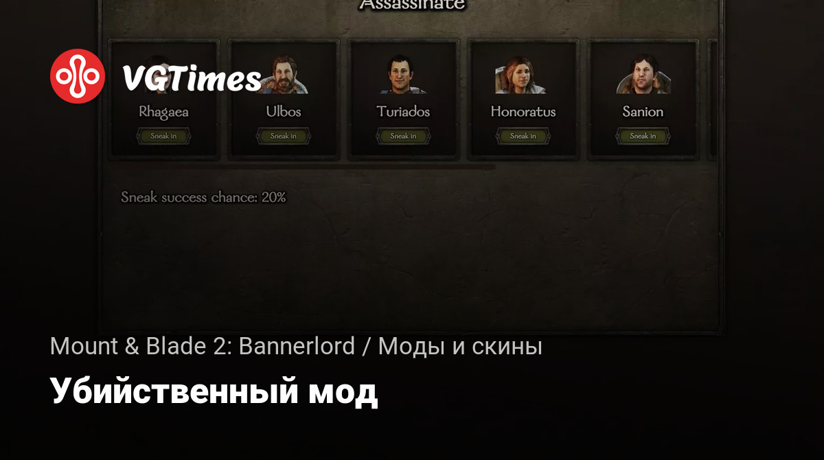 Этот мод добавляет возможность убивать дворян в городе и в замках. Успешное убийство не принесет никаких побочных эффектов, в отличие от казни пленных дворян. Однако, если вас заметят, это приведет к ужасным последствиям. Этот мод не имеет никаких пользовательских данных для сохранения и не использует Harmony, поэтому он должен быть совместим с другими модами.