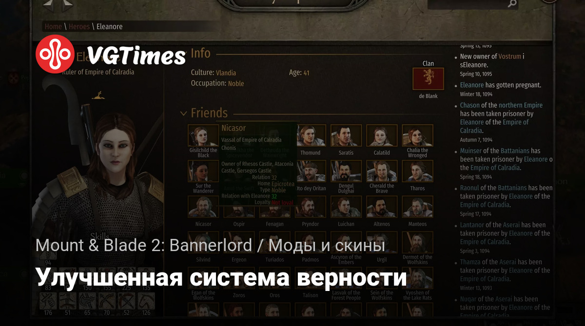 Новая модификация для Mount & Blade 2: Bannerlord полностью перерабатывает систему верности и существенно её улучшает. Главное нововведение в игре, которое появится после установки мода, это Система гарантированной верности — изменяет стандартные правила получения верности.