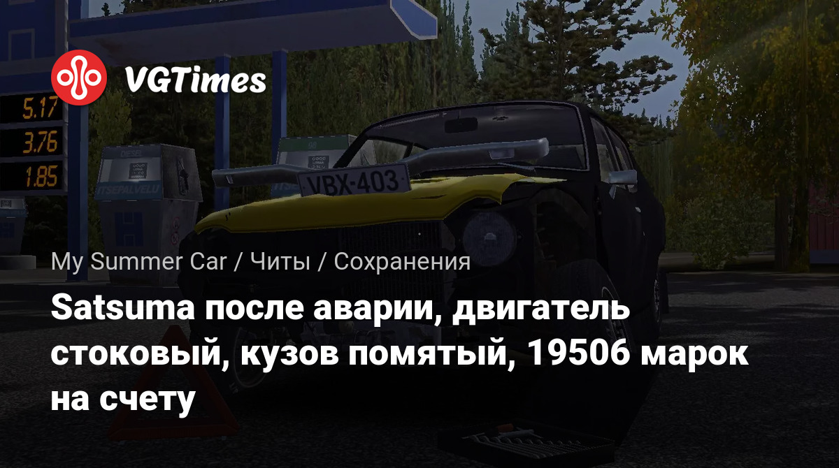 Gry My Summer Car Pliki Zapisane Satsuma после аварии, двигатель стоковый, кузов помятый, 19506 марок на счету