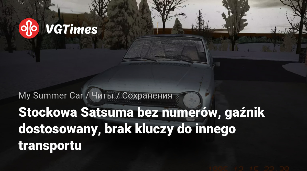 Gry My Summer Car Pliki Zapisane Stockowa Satsuma bez numerów, gaźnik dostosowany, brak kluczy do innego transportu