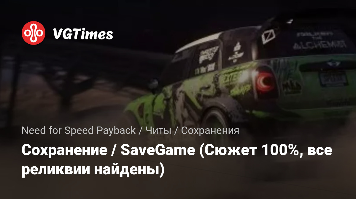 • Need for Speed Payback — Сохранение / SaveGame (Сюжет 100%, все реликвии найдены)