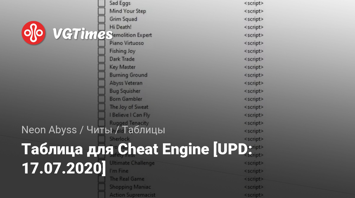 Таблица для Cheat Engine [UPD: 17.07.2020]