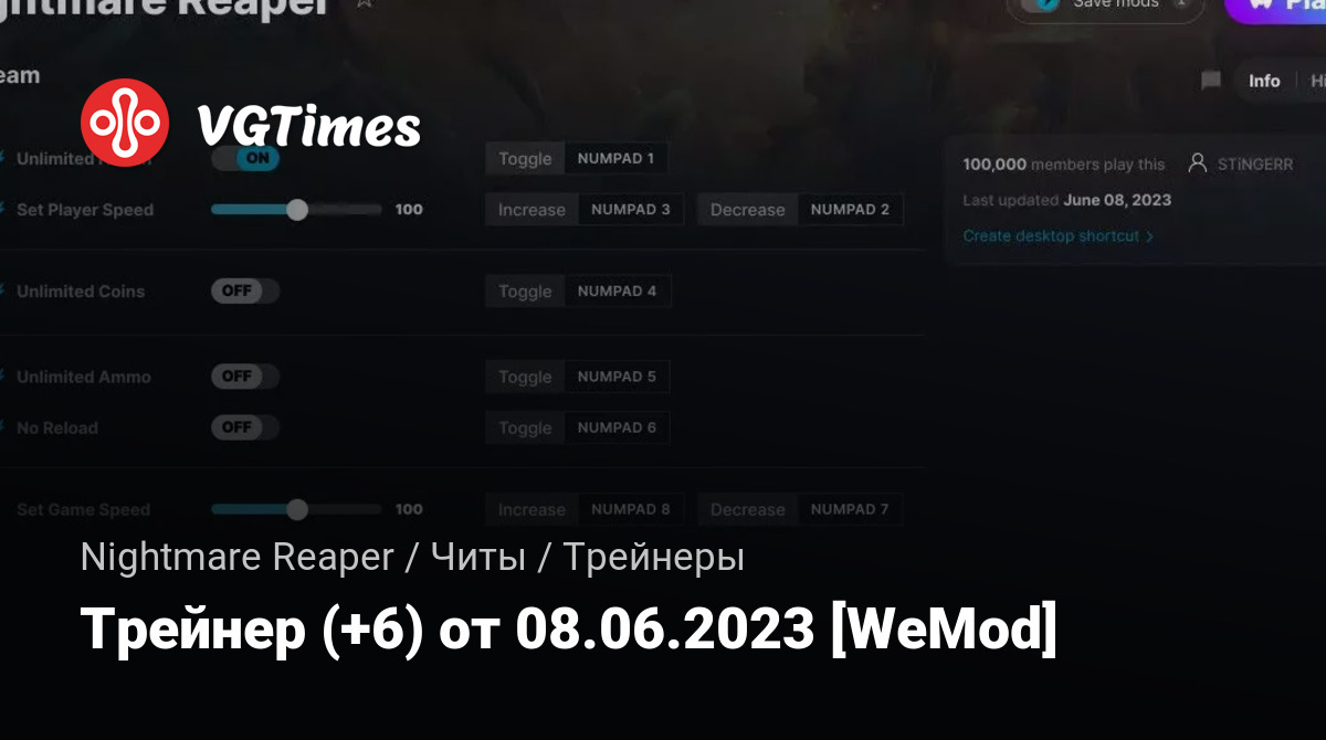 Для использования трейнера необходима установка системы WeMod (требуется онлайн подключение).