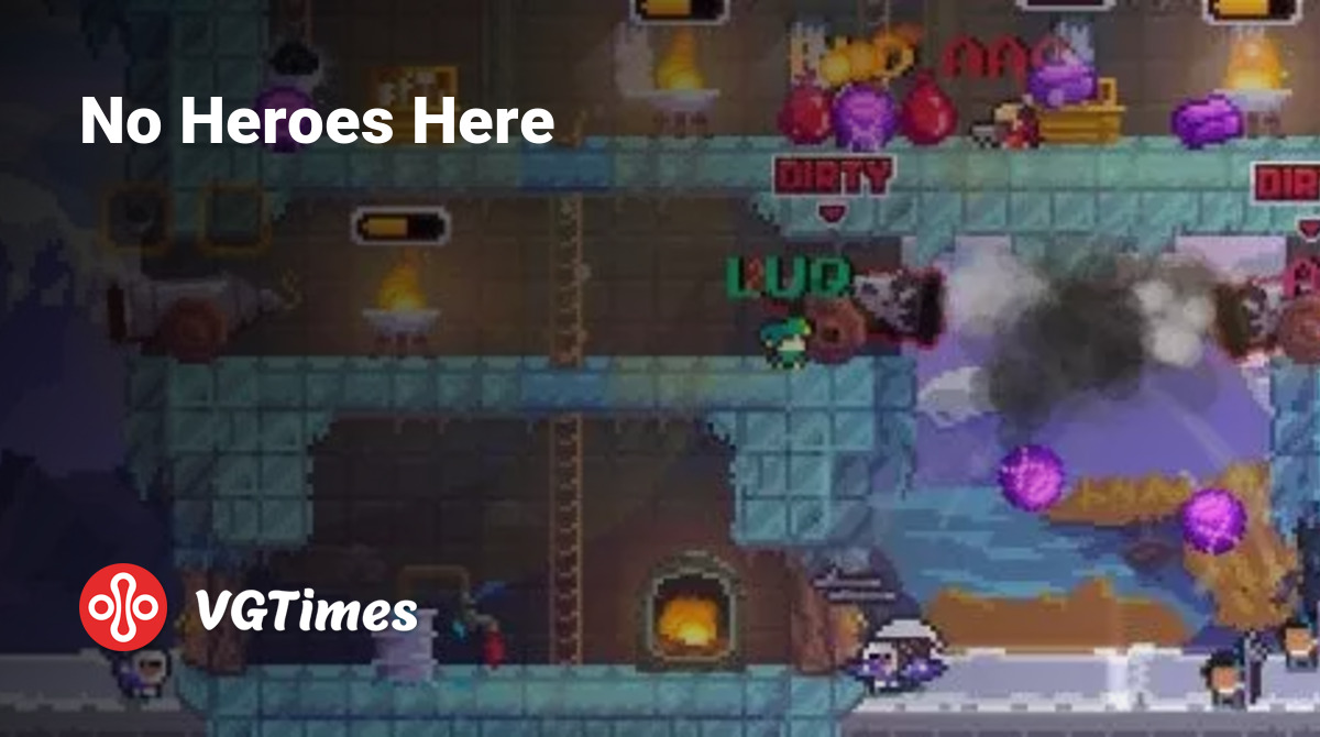 No Heroes Here — dwuwymiarowa kooperacyjna gra akcji-platformowa z elementami strategii w gatunku „obrony wieży”. Królestwo Noobland jest w stanie wojny, a jego bohaterowie zniknęli. Ze śmiercią ostatniego bohatera, zwykli ludzie łączą siły, aby uratować królestwo. Będziesz musiał wykazać się przemyślaną pracą zespołową, aby tworzyć amunicję, ładować działa i strzelać do hord wrogów.