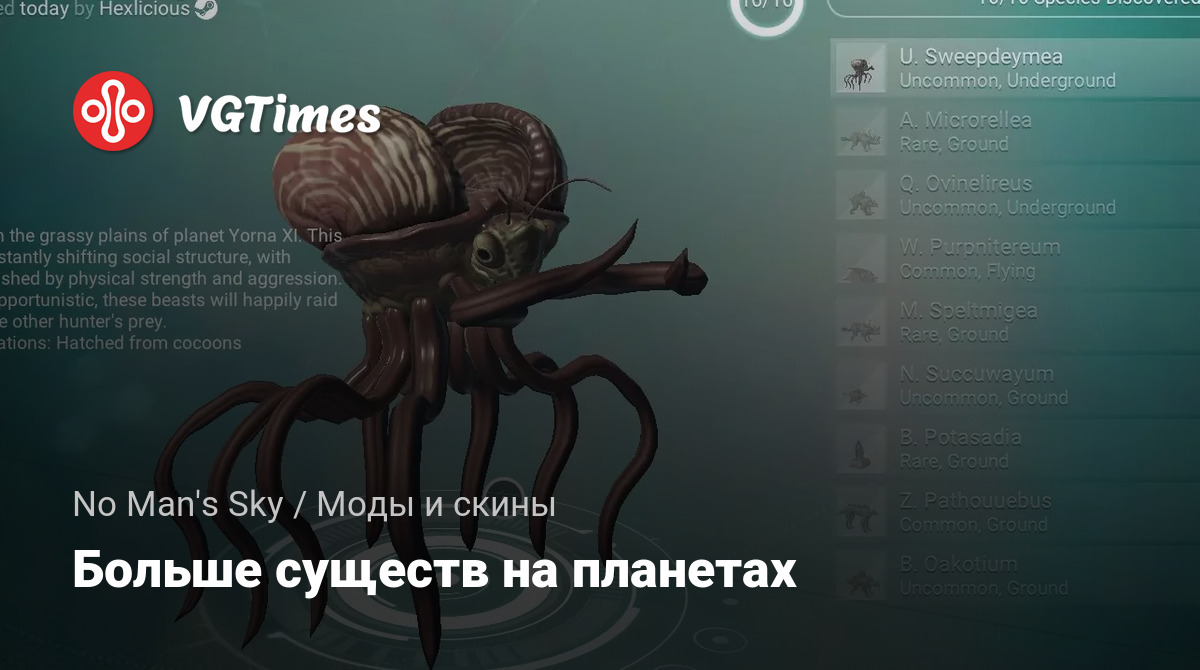 Этот мод немного корректирует появление существ таким образом, что они будут появляться гораздо быстрее, чаще и в больших количествах, что поможет вам быстрее заканчивать полное изучение планеты. А также, благодаря этому моду, мир игры будет казаться более живым.