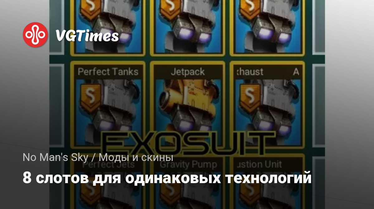 Этот мод позволит вам установить целых 8 технологий одного блока, вместо 3, как в оригинальной игре. Эти блоки можно использовать и в ранце, и в кораблях, и в наземной технике. Теперь, все 8 ячеек будут влиять на увеличение мощности технологии. Установка по этому пути /steamapps/common/No Man's Sky/GAMEDATA/PCBANKS. Модификация заменяет файл GCGAMEPLAYGLOBALS.GLOBAL.MBIN.