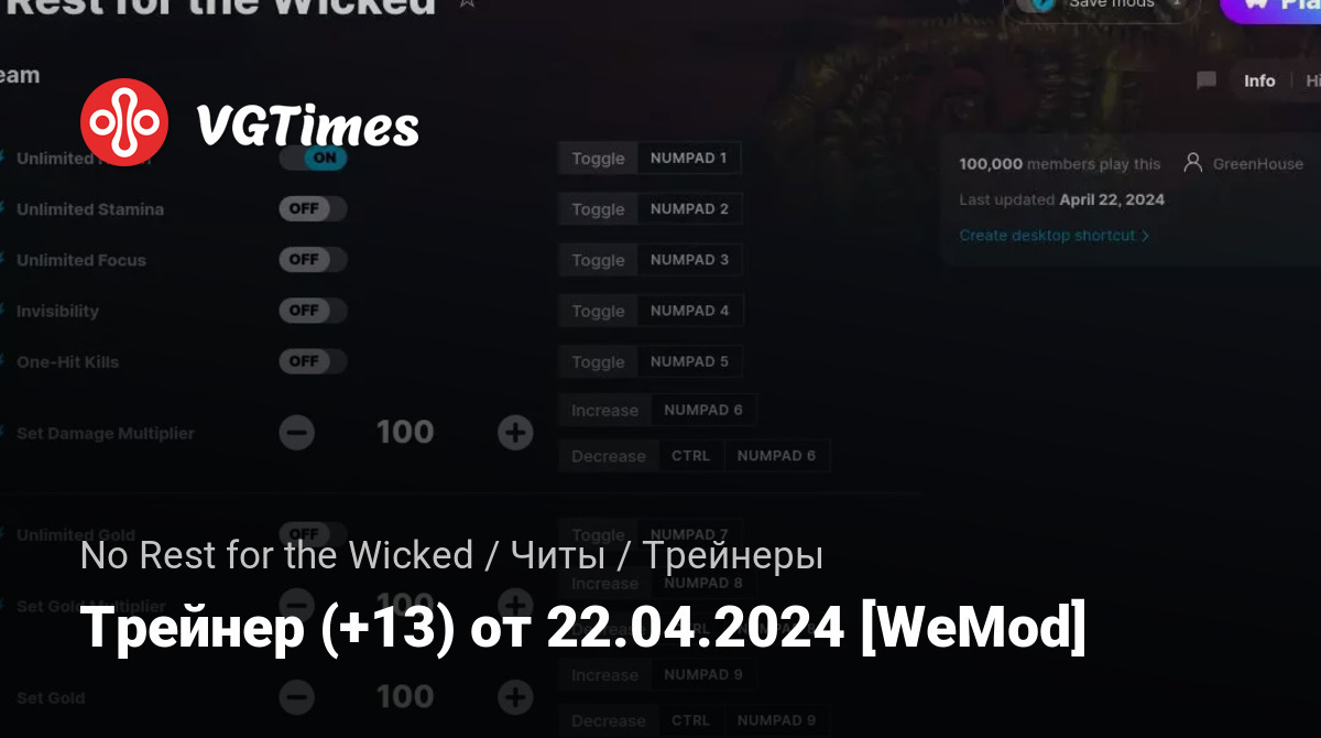 Трейнер (+13) от 22.04.2024 [WeMod]