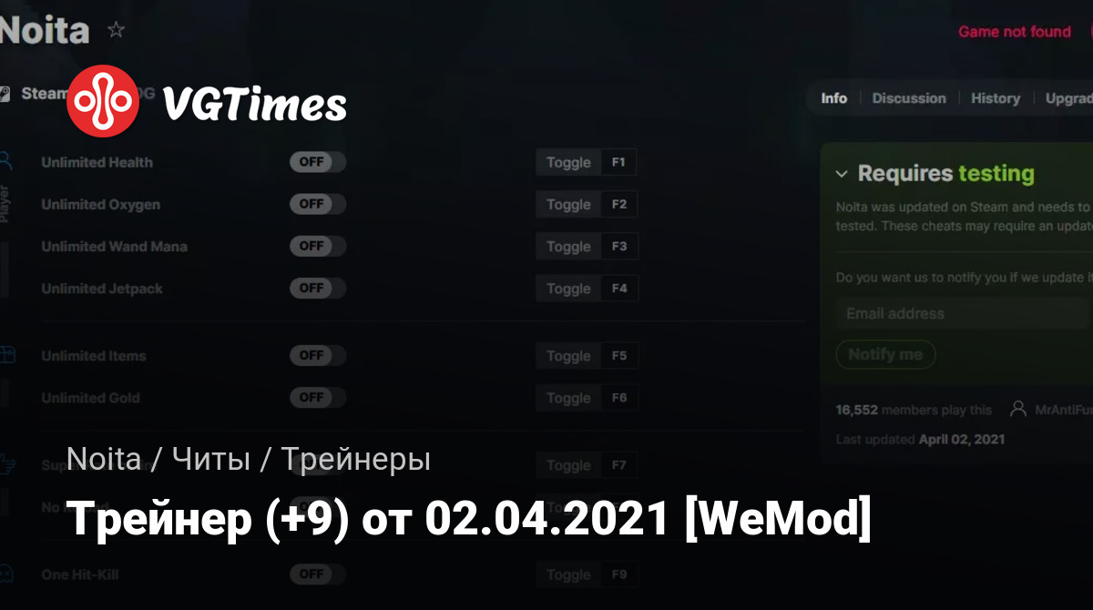 • Noita — Трейнер (+9) от 02.04.2021 [WeMod]