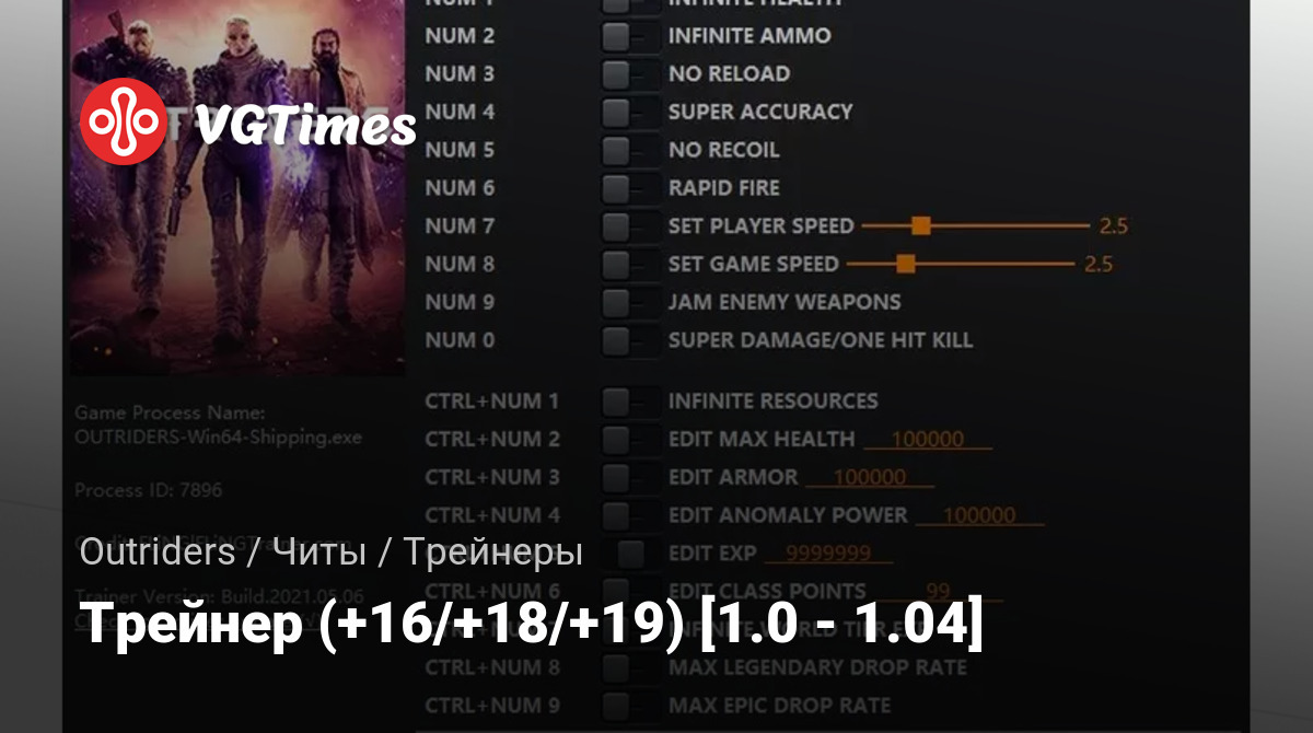 Для отключения анти-чита файл EAC_OUTRIDERS.exe должен быть скопирован в корневую папку игры с заменой (предварительно сделав бэкап оригинального файла), в противном случае ТРЕЙНЕР РАБОТАТЬ НЕ БУДЕТ!
