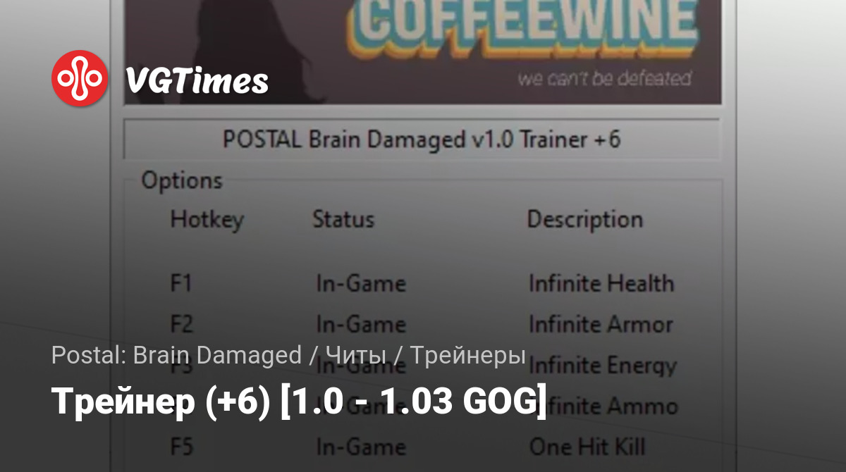 • Postal: Brain Damaged — Трейнер (+6) [1.0 - 1.03 GOG]