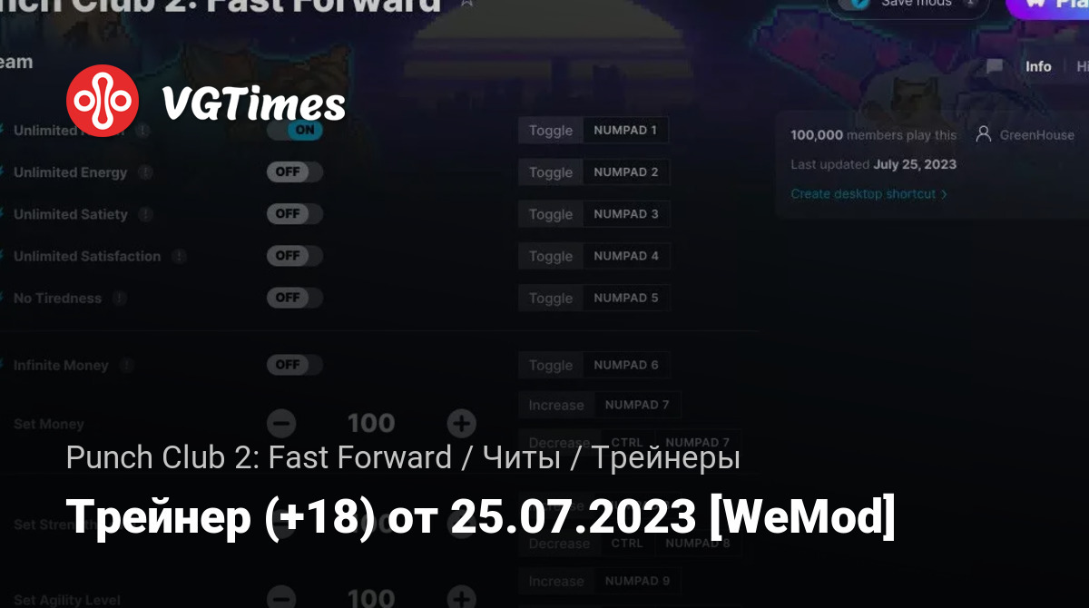 Для использования трейнера необходима установка системы WeMod (требуется онлайн подключение).