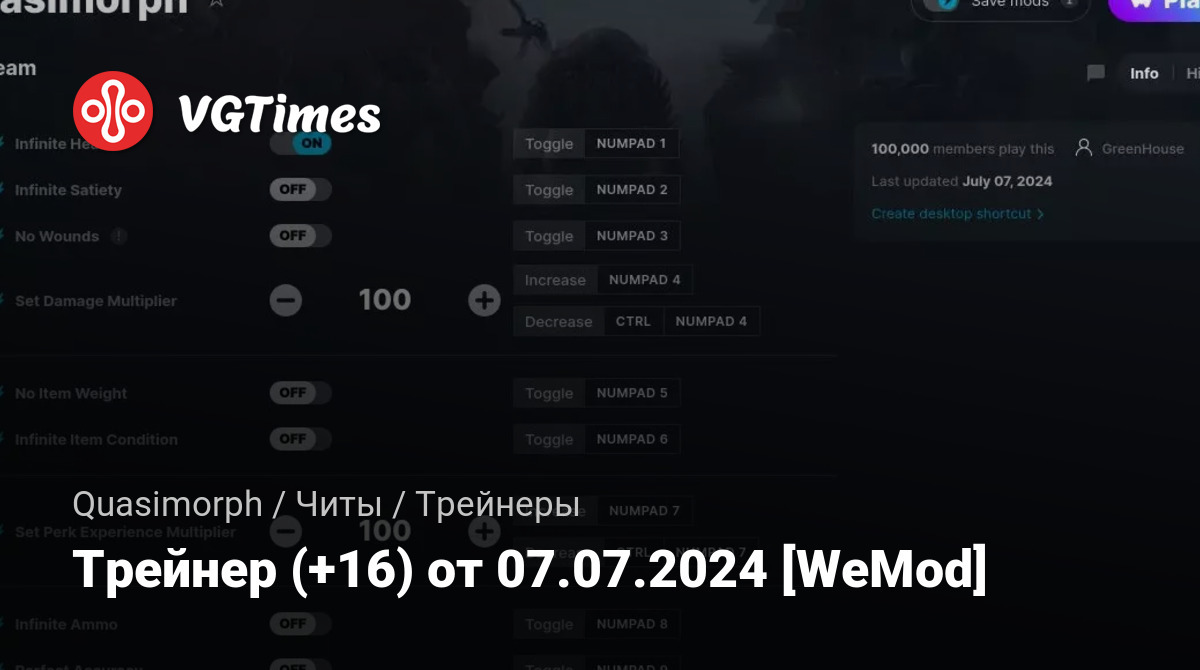 Трейнер (+16) от 07.07.2024 [WeMod]