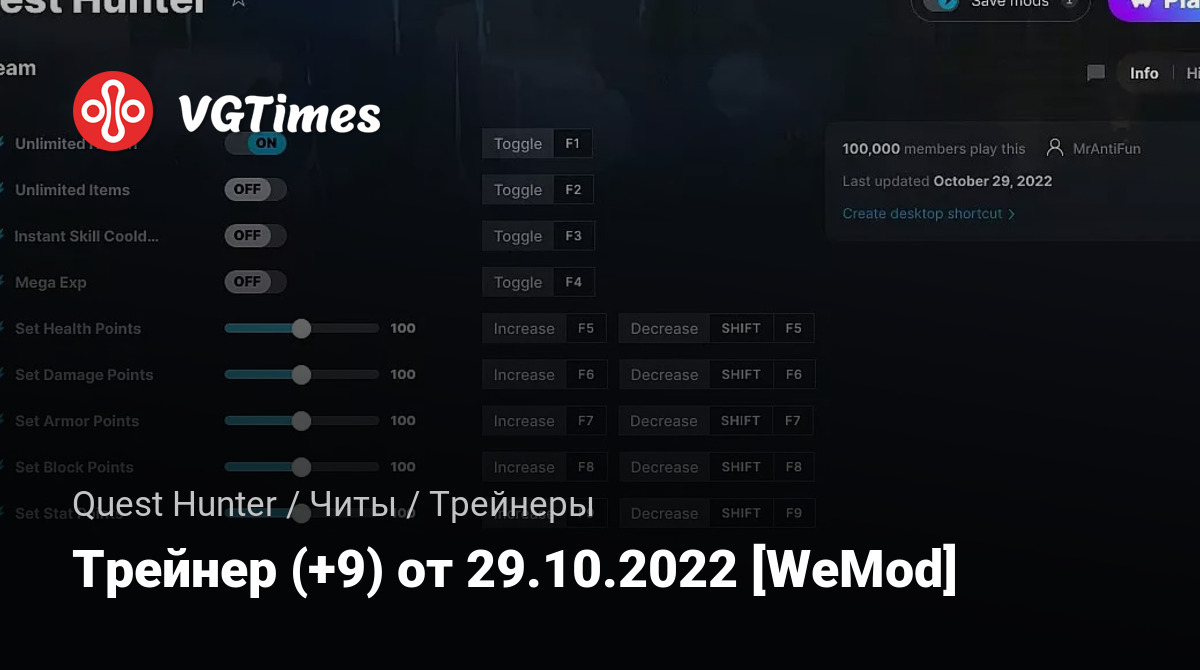 Трейнер (+9) от 29.10.2022 [WeMod]