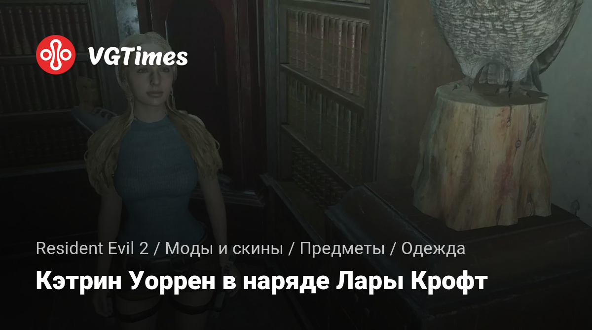 Мод для Resident Evil 2 заменяет стандартный наряд Кэтрин Уоррен в ее дополнении, на наряд Лары Крофт. Наряд адаптирован под анимации персонажа и ее пропорции.