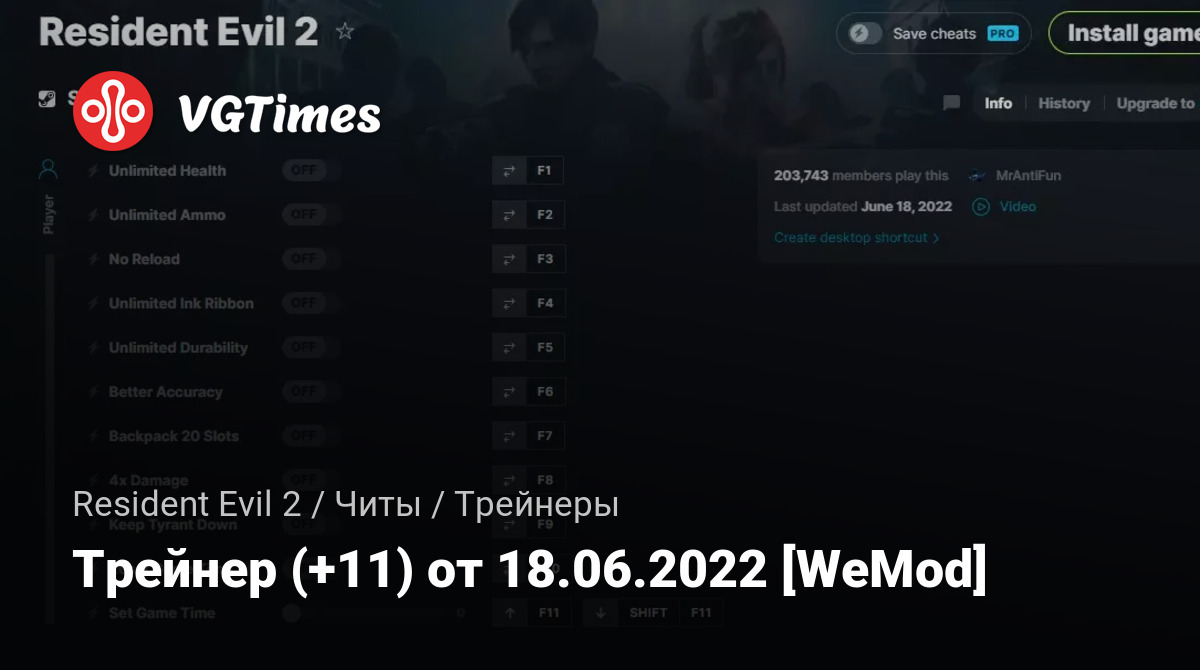 Трейнер (+11) от 18.06.2022 [WeMod]