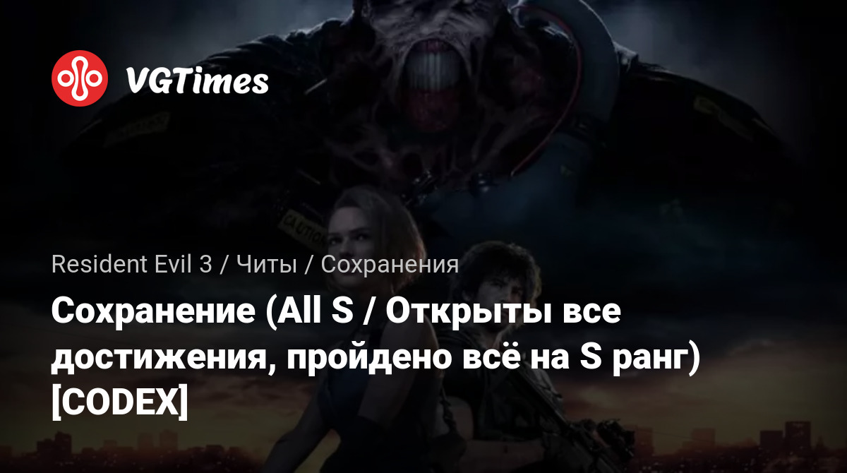 Сохранения для пиратской версии (CODEX) Resident Evil 3 Remake. Открыты все достижения, пройдены все уровни сложности на S ранг, забиты все слоты сохранений по мере прохождения игры.